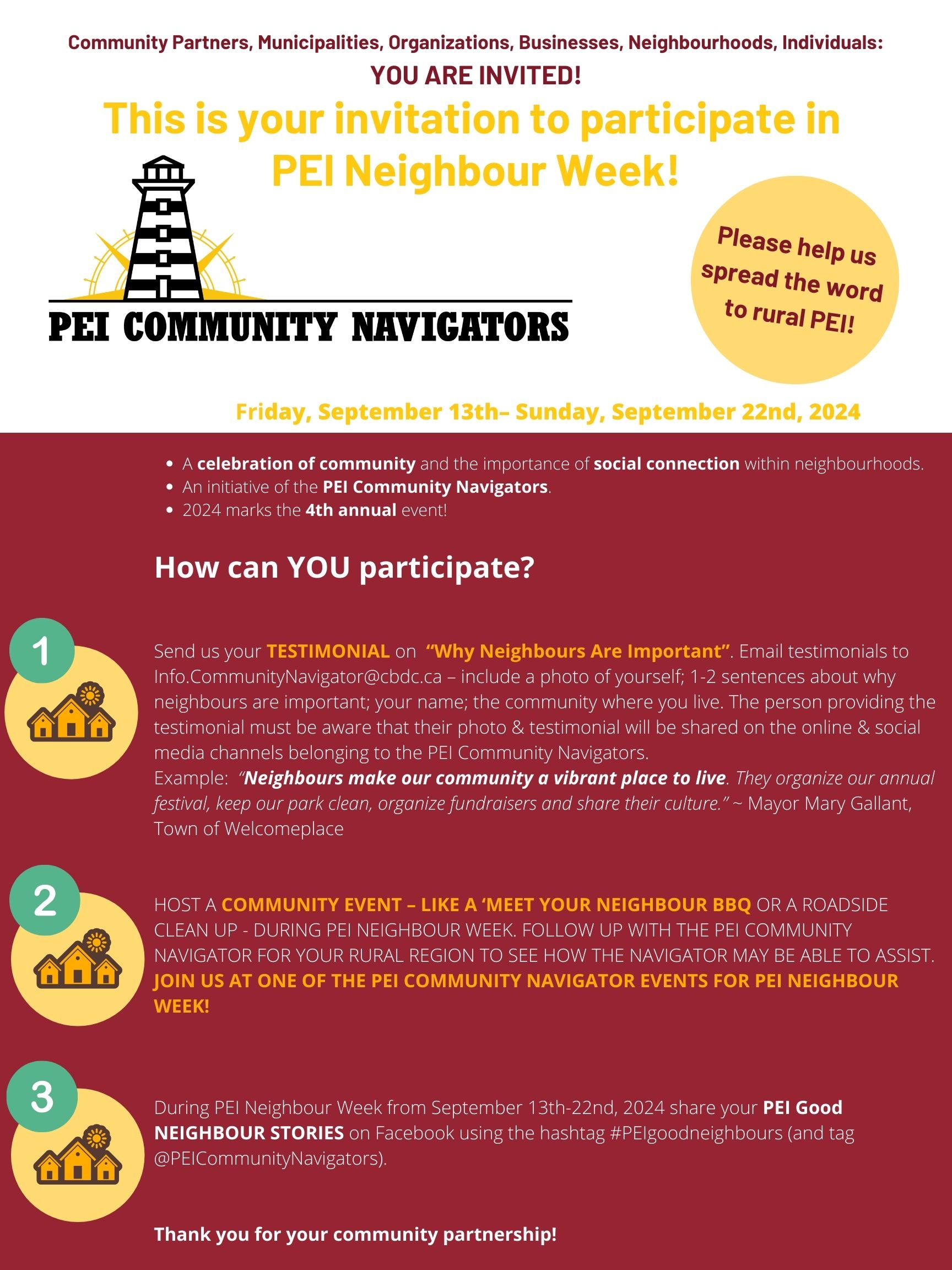 PEI Neighbour Week September 13-22, 2024